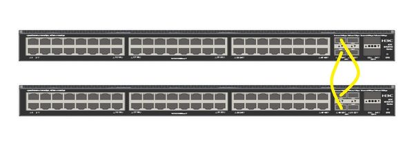 Şimdi 2 switch arasında IRF konfigürasyonunun nasıl yapıldığına bakalım. Switchleri yandaki gibi çapraz şekilde bağlayacağız. Ben bu uygulamamda işlemleri 10G'lik fiber portlar üzerinden gerçekleştirdim.