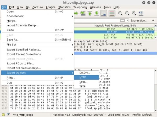 Wireshark ile çalışırken trafik içerisinde geçen bazı ojeleri export etmek isteyebilirsiniz. Bunu yapabilmek için: