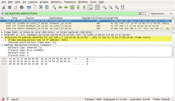 Aşağıda belirtilen filtreleri kullanarak sisteminize yönelik muhtemel ARP saldırısını tespit edebilirsiniz.
