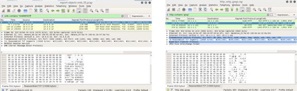 İstediğimiz protokol içerisinde arama yapabilmemizi sağlayan contains filtresi bize çok kolaylık sağlamaktadır. Örneklerde SMB ve HTTP trafikleri içerisinde bazı aramalar yapılmıştır. (http contains "jpeg" -- smb contains "SHARKFEST" gibi...)